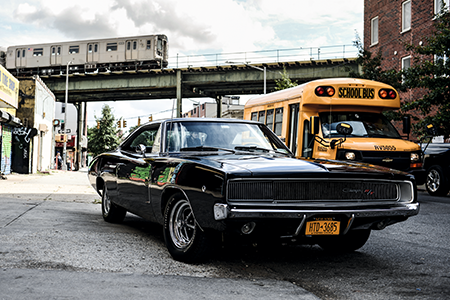 También sacamos a pasear un Dodge Charger R/T por las calles de Nueva York. No es San Francisco, como en la película Bullit, pero la analogía es suficiente para soñar que estamos inmersos en una persecución de coches enfrentando a los buenos con los malos.