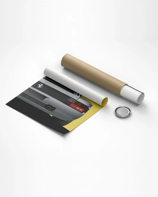 Un superdeportivo que marcó la estética de los años 80s y que además supuso para la marca del cavallino rampante un verdadero revulsivo de ventas y un éxito instantáneo. Esta lámina tiene tanto la opción con fondo amarillo (que representa la portada edición limitada de nuestro Número 10 que se agotó al poco tiempo de su lanzamiento) como la opción con fondo azul que es la portada de la edición actual.