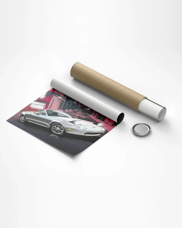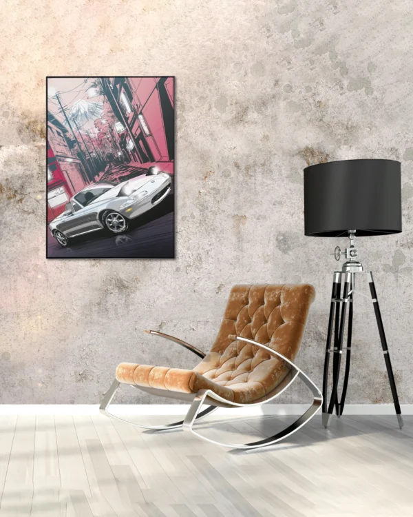 La espectacular ilustración que plasma toda la esencia de nuestro protagonista del Número 16. Con el Monte Fuji adornando el fondo de la imagen y un espectacular Mazda Mx5 entre edificaciones de estética japonesa, todo en combinación con una gama de colores que nos transporta instantáneamente al País del Sol Naciente.