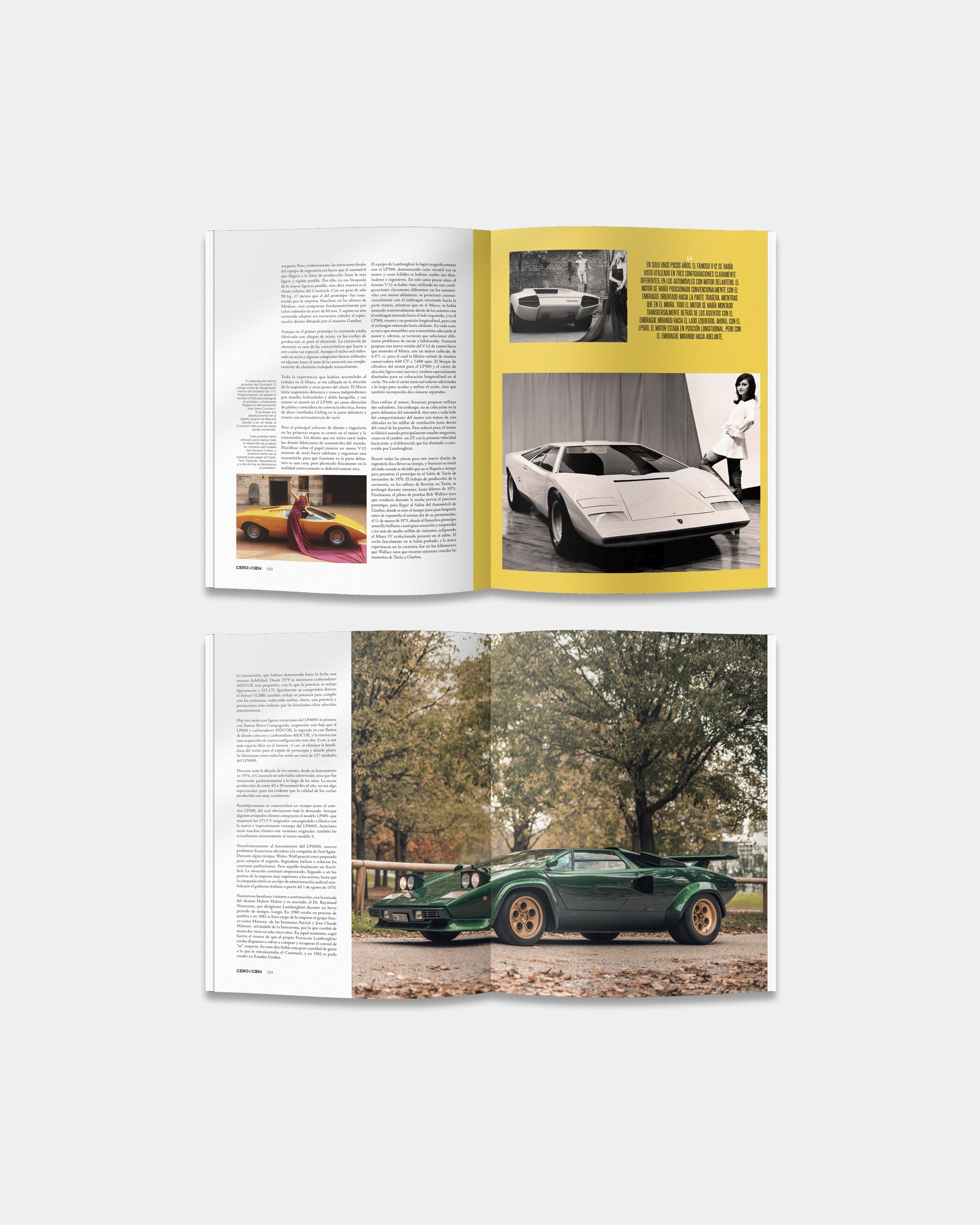 En este número 1, el tema principal son una serie de artículos relacionados con el Lamborghini Countach. Sin ninguna duda, uno de los modelos más míticos jamás construidos, que bien merecía este despliegue de contenido, incluyendo un pequeño recorrido a lo largo de la historia de Ferruccio Lamborghini, un detallado reportaje de las diferentes versiones fabricadas y un par de comparativas con modelos contemporáneos de Ferrari. Un gran número de páginas, acompañadas de un material gráfico extraordinario.