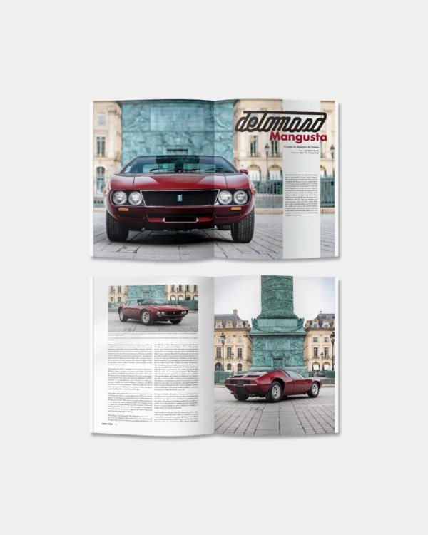 Otro reportaje muy significativo es el que narra toda la historia del desarrollo de la re-edición que pretendía relanzar la marca de deportivos Pegaso con una nueva versión del Z-103, con fotografías de una de las 10 unidades producidas. También rendimos homenaje a ese enorme emprendedor que fue Alejandro de Tomaso con un reportaje sobre el De Tomaso Mangusta, ilustrado con una colección extraordinaria de fotografías.